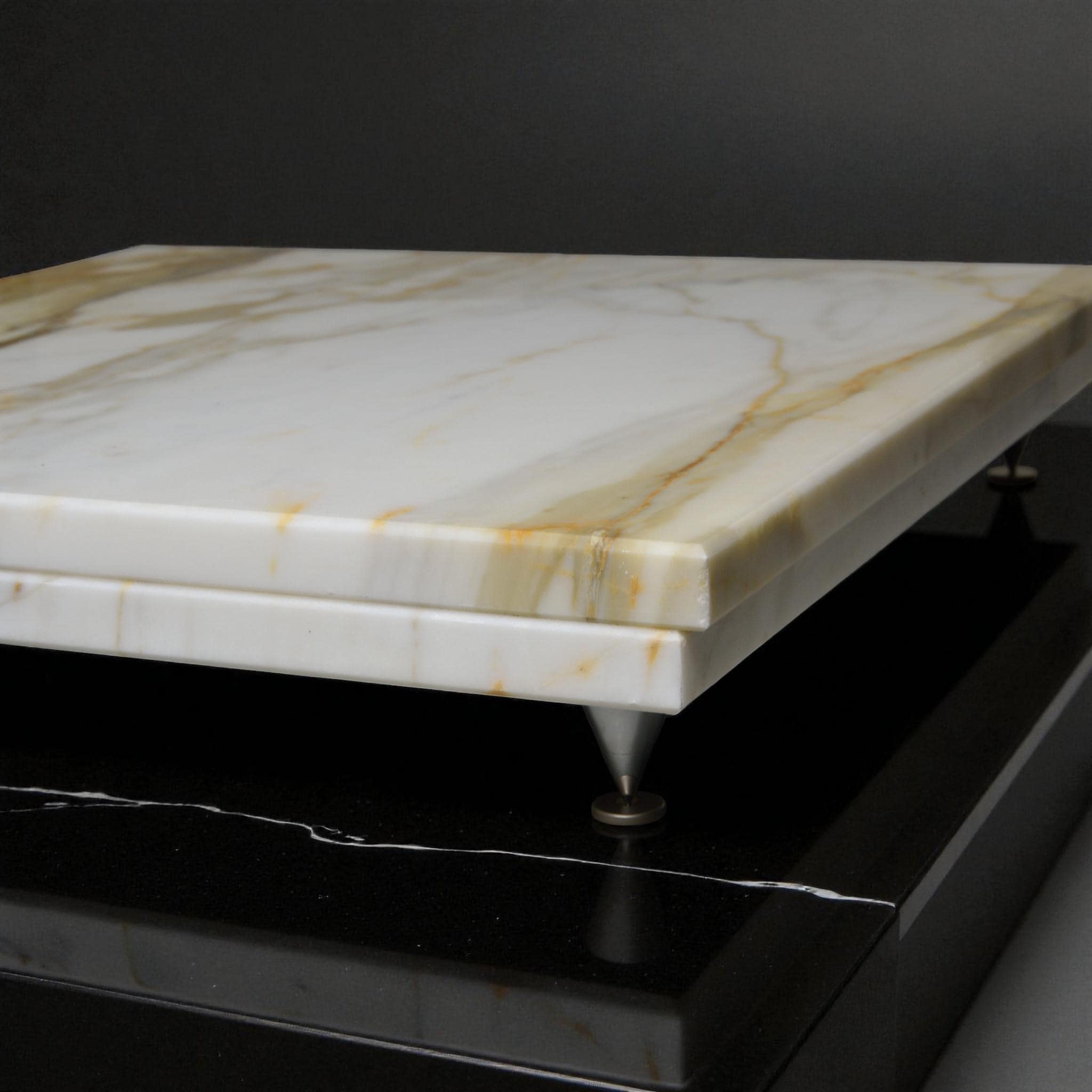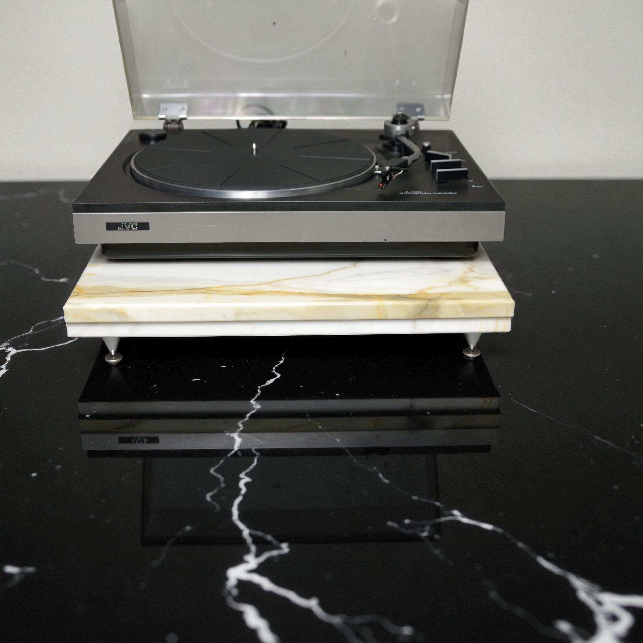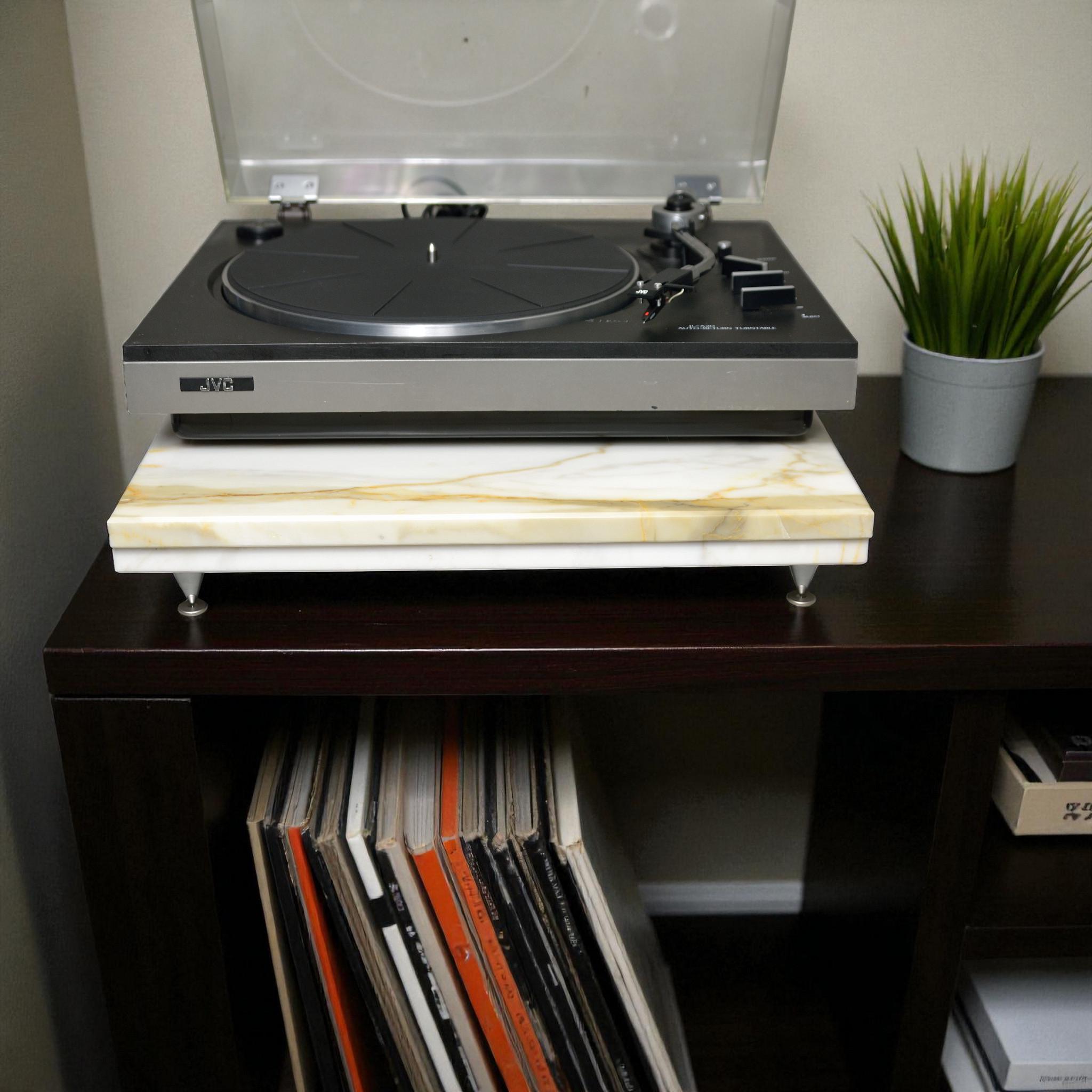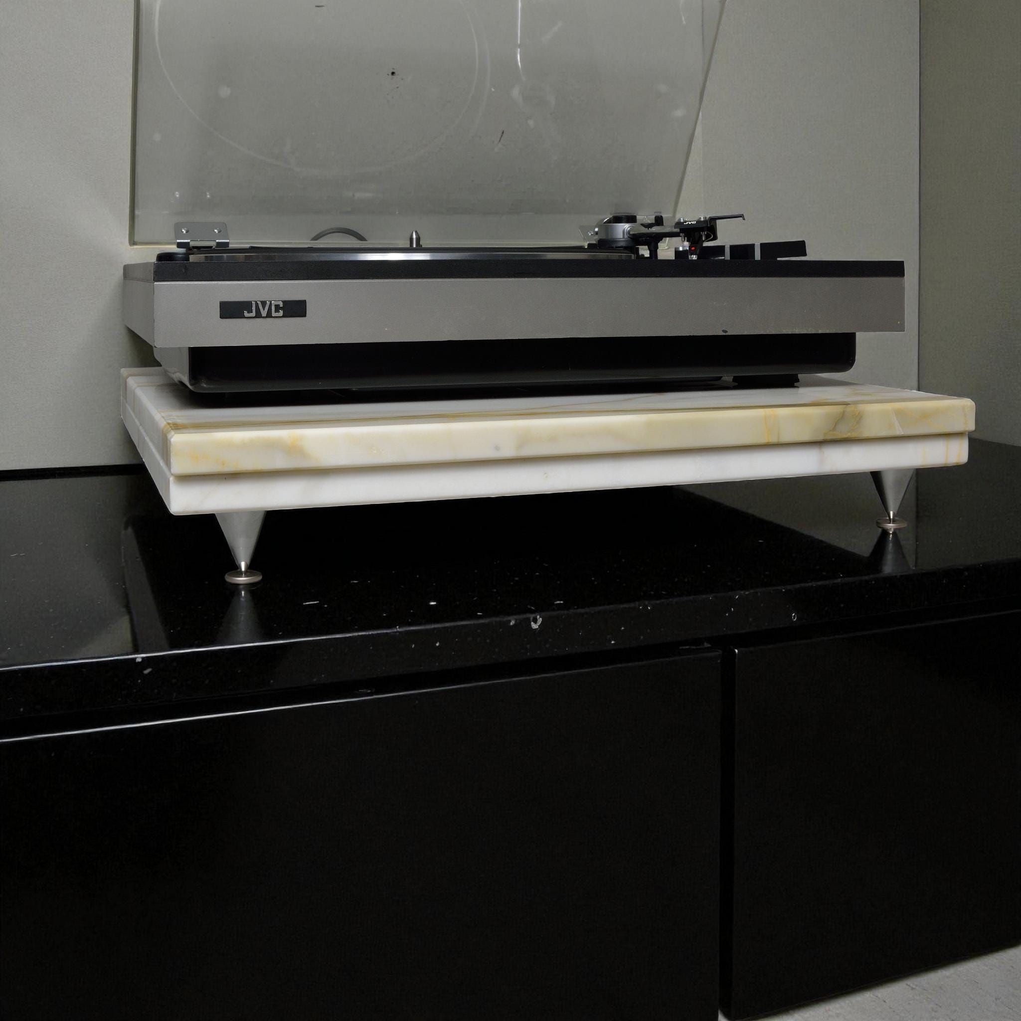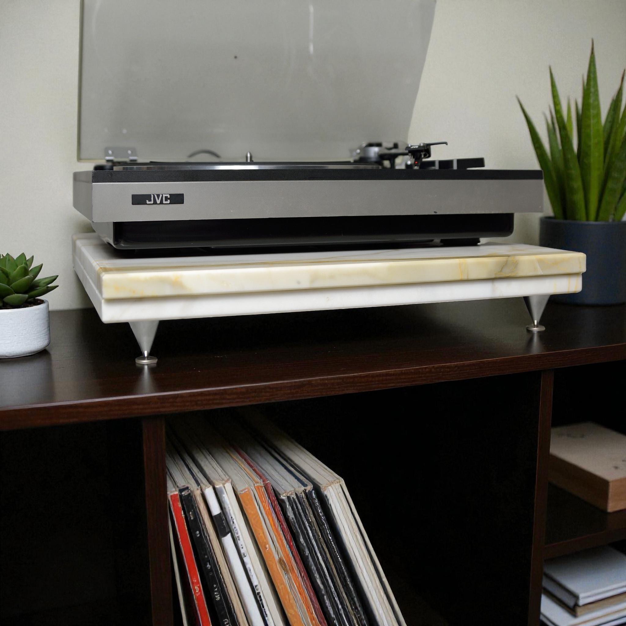 Precision-cut and honed to perfection, this platform features adjustable isolation spikes to reduce vibration, enhance clarity, and improve soundstage stability — allowing your turntable or audio component to perform at its best.