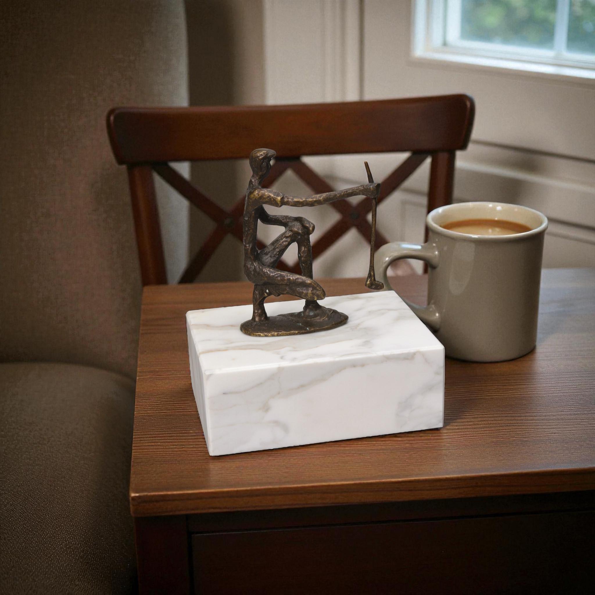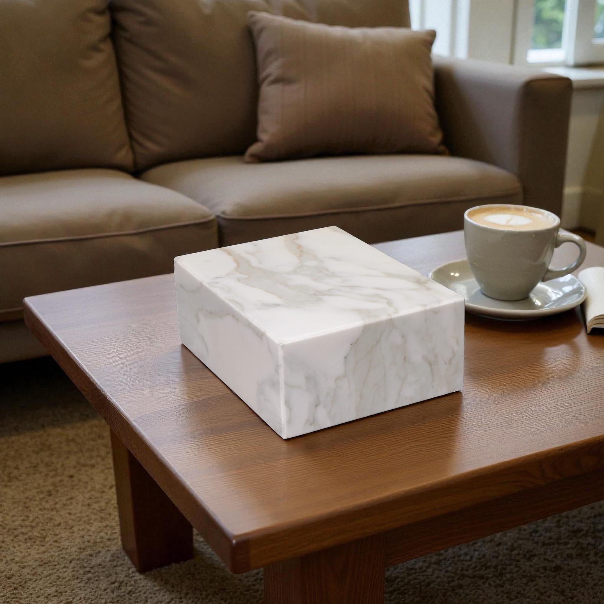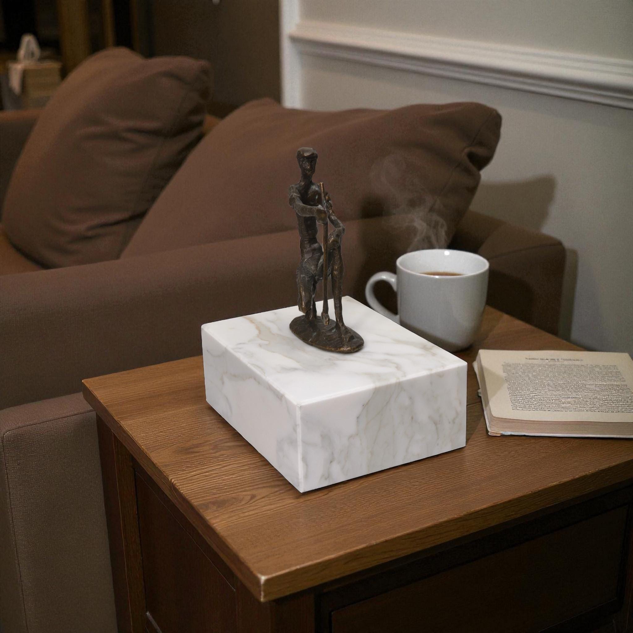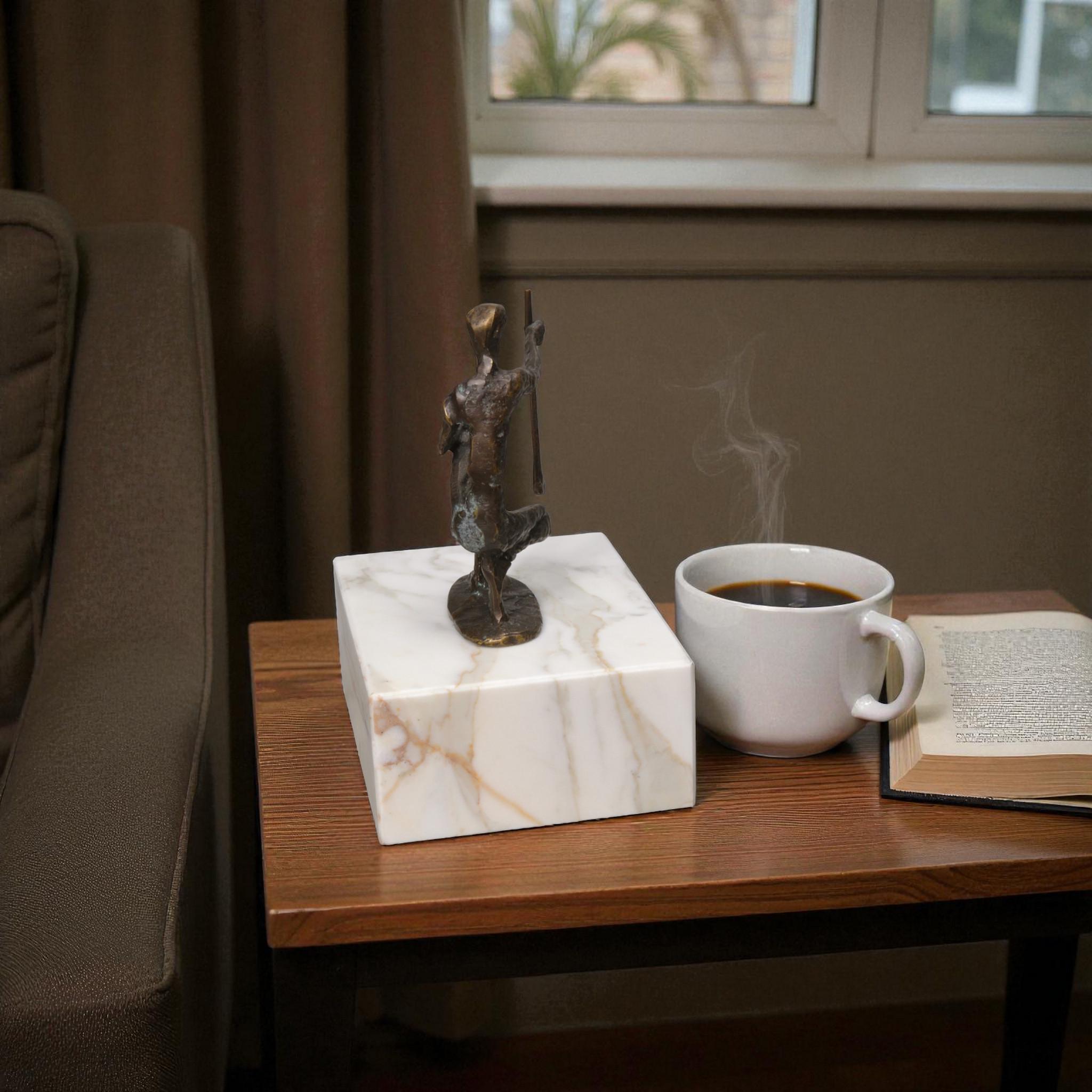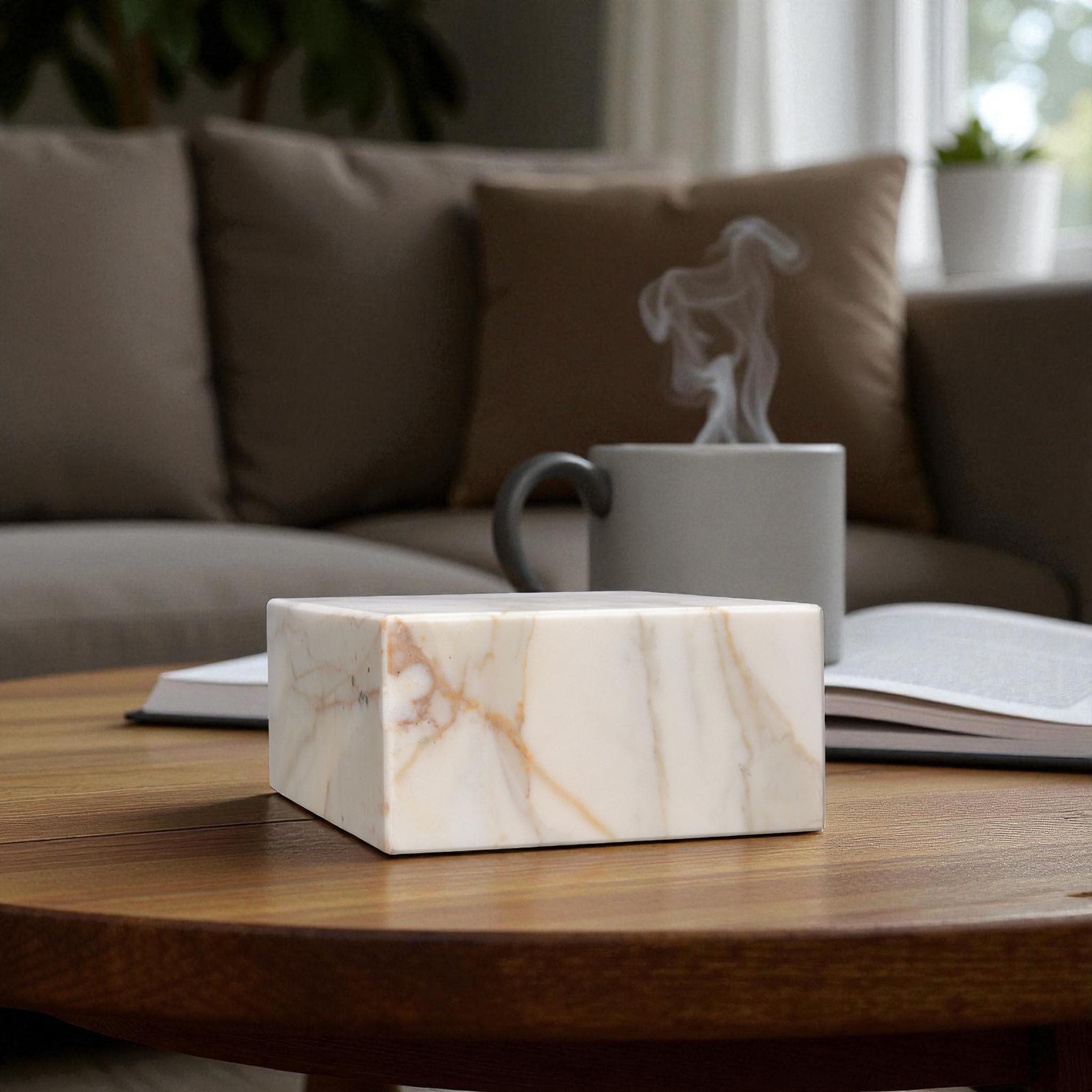 This base is made from Calacatta Gold marble with a smooth honed finish. It’s crafted from a stone remnant, giving leftover material a new purpose. The warm gold lines and soft white tone make it a great stand for sculptures, small art pieces, and home décor. Each piece is cut and finished by hand, so every base has its own natural look.