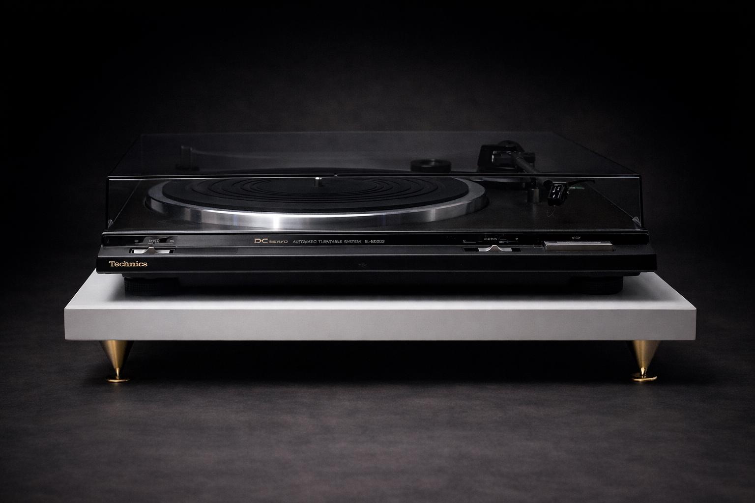- Size: The White Caesarstone turntable stand measures approximately 18”x18”x1.25” and 2.75” in height with spikes.