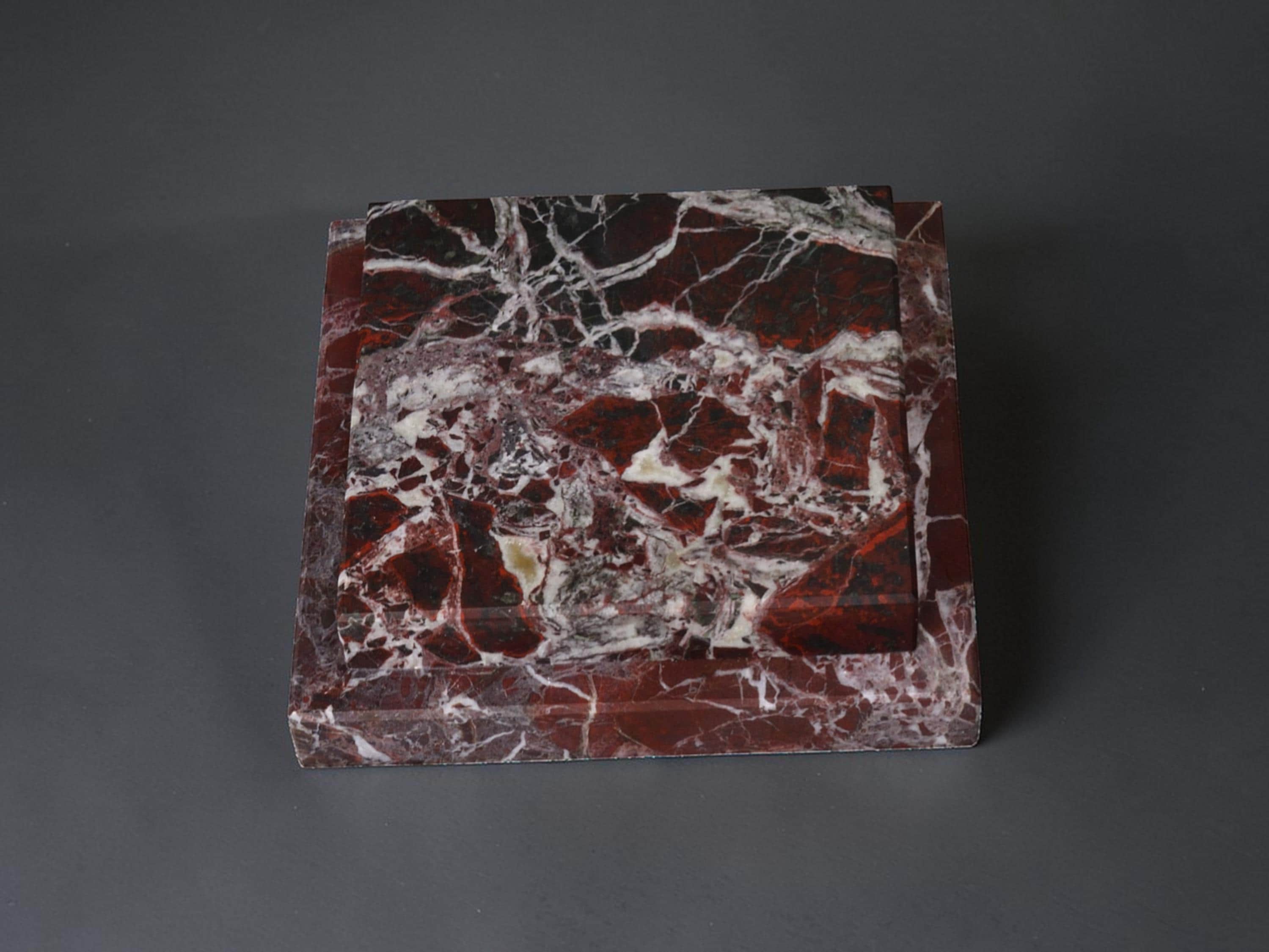 The low-profile, layered form makes it a strong base for art display, sculptures, or small decorative objects without taking attention away from the piece above.