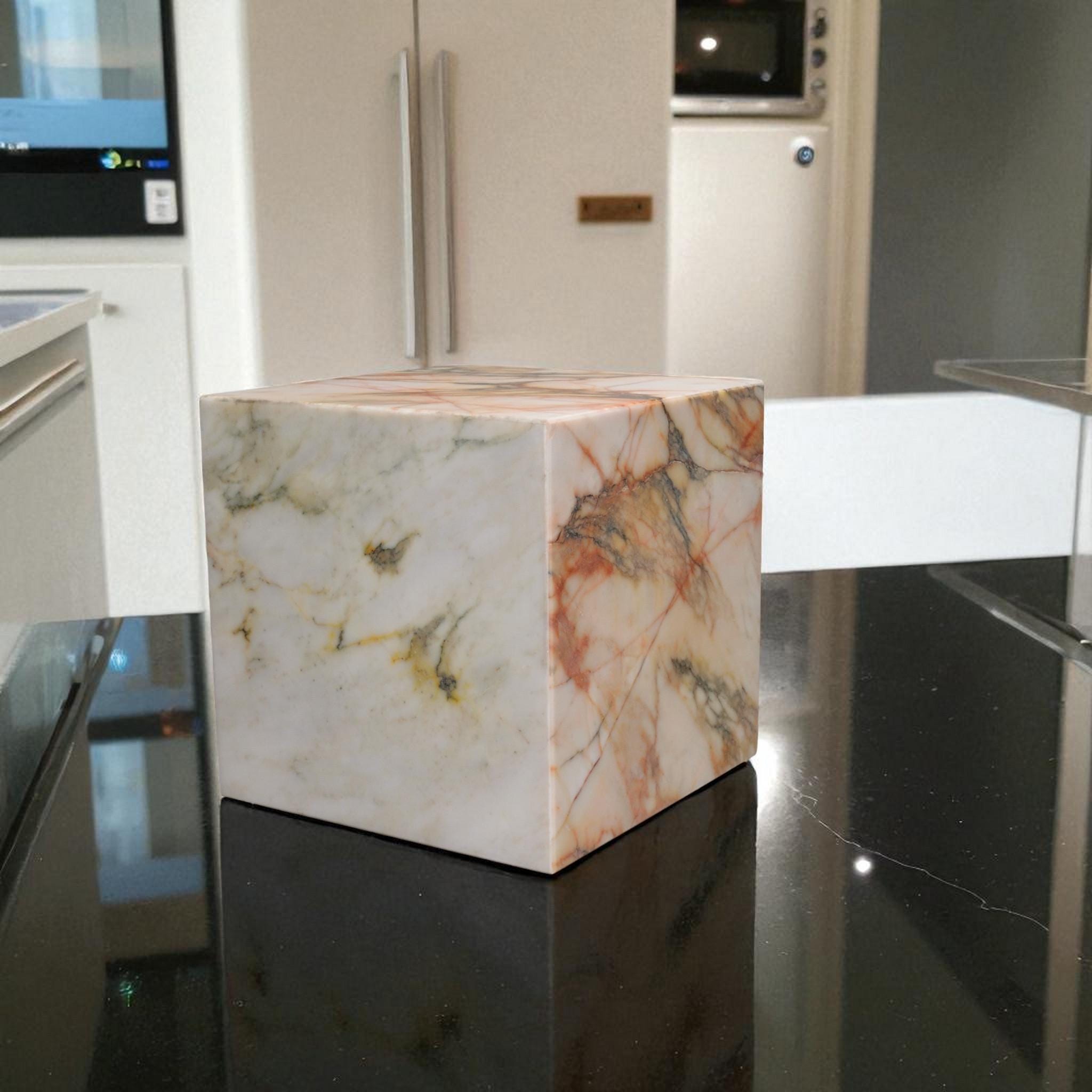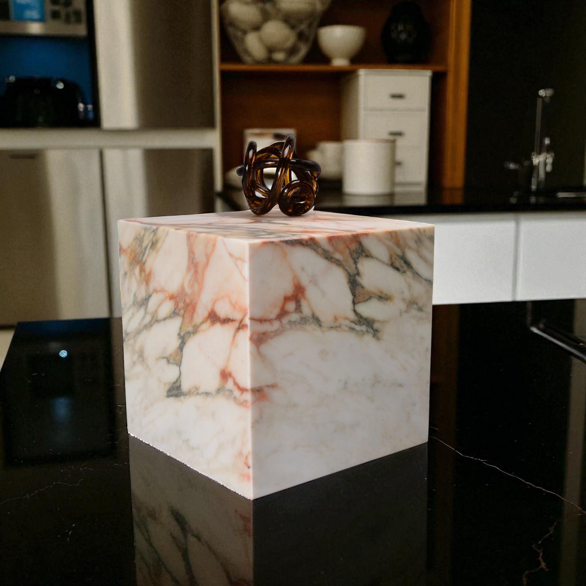 Perfect for art collectors, interior designers, or anyone seeking a refined home accent, this Calacatta base combines durability, artistry, and eco-conscious design.