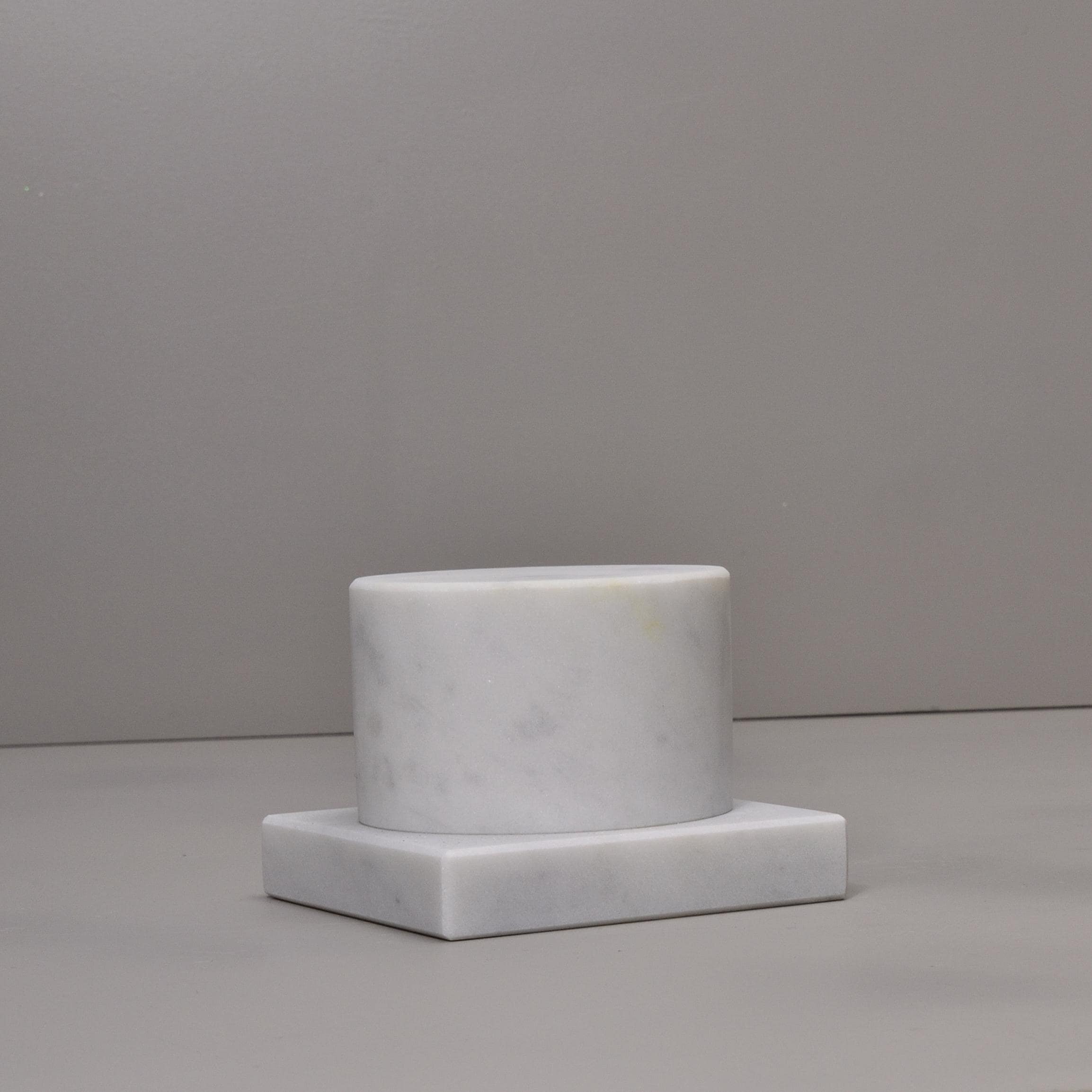 This display base is made from White Carrara Marble, known for its soft white tone and gentle gray veining.