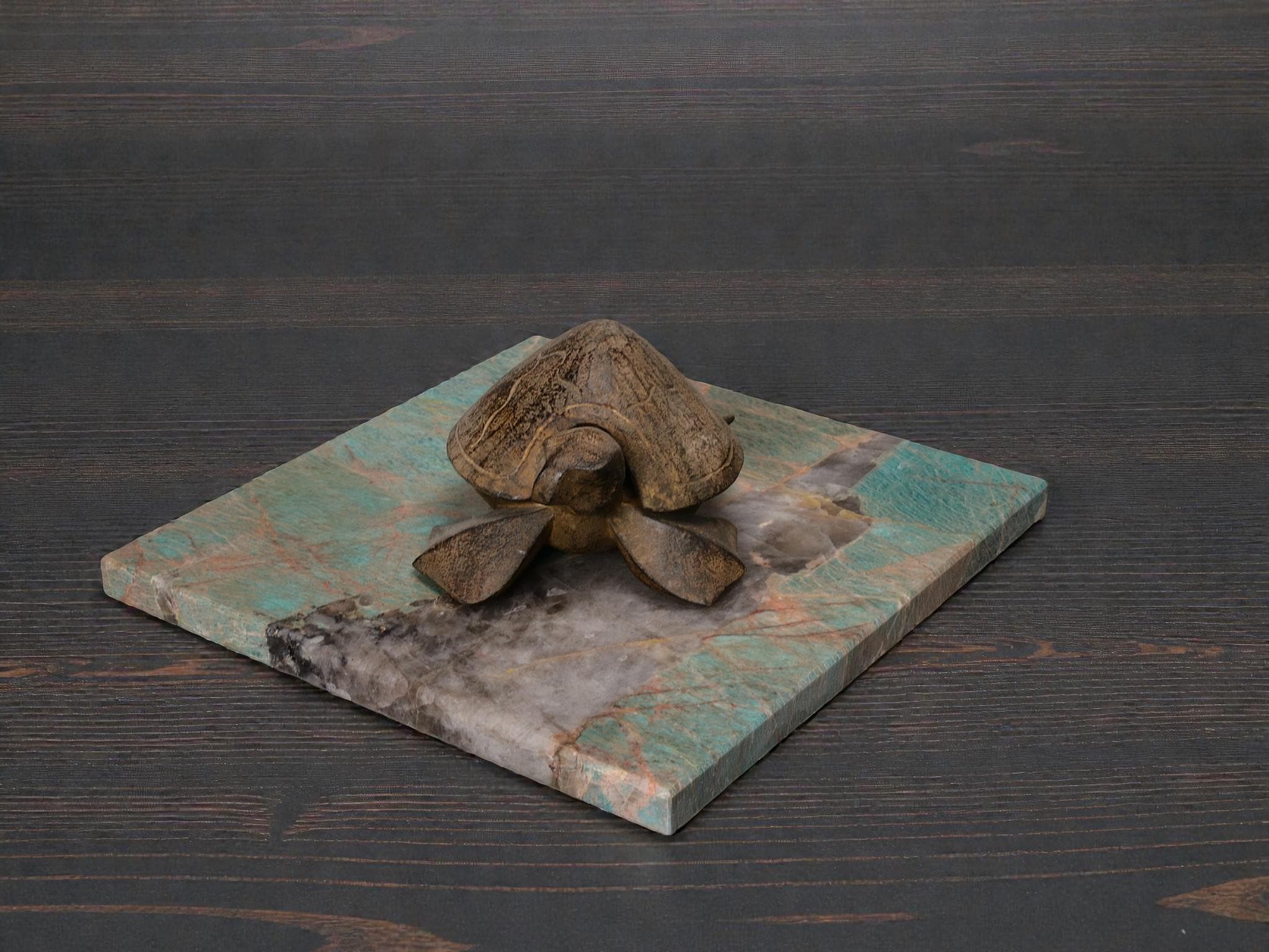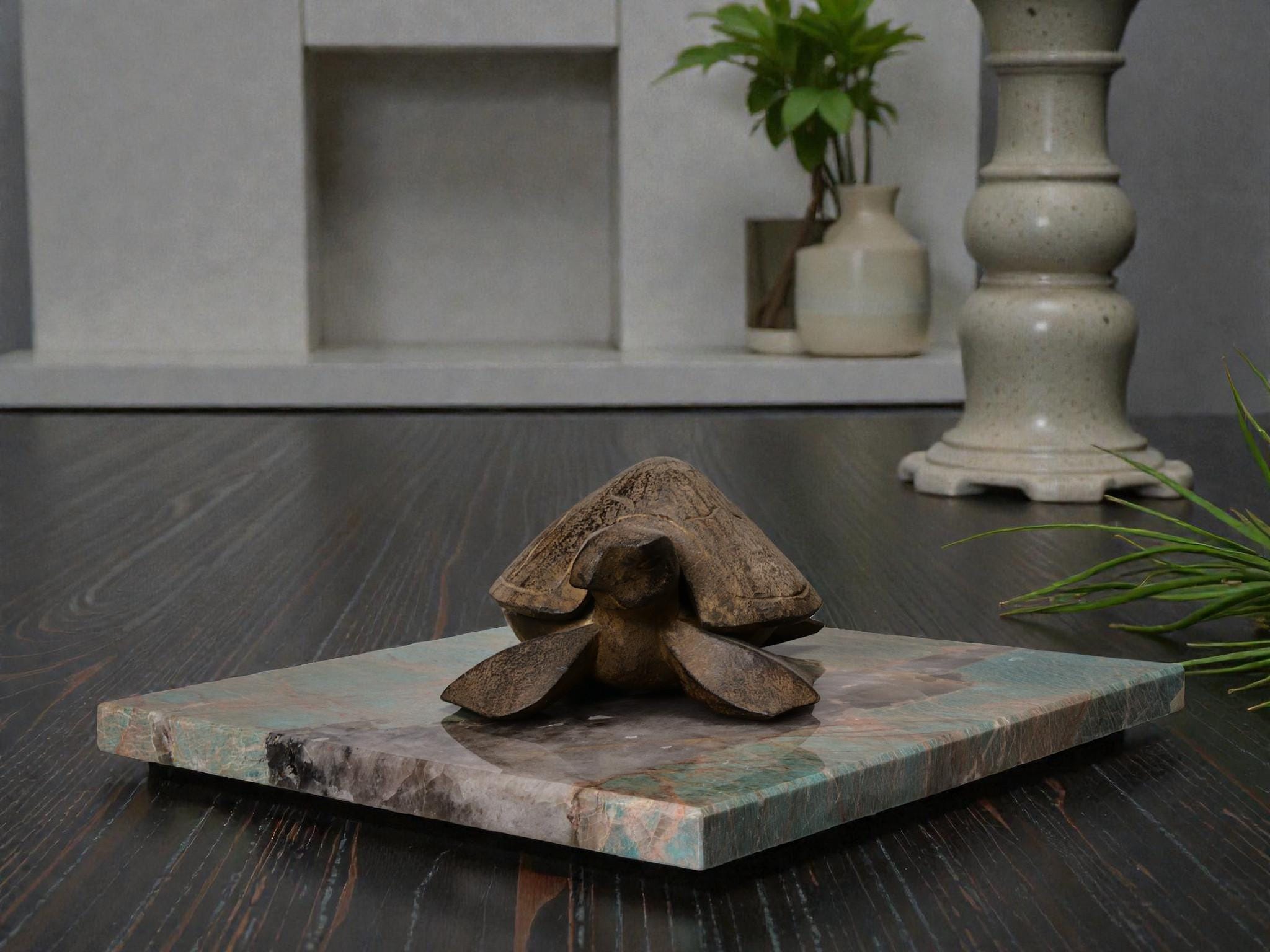 Crafted from genuine green Quartsize, this display base brings a vibrant, luminous touch to any space. Its soft green body, intersected with natural gold and dark veining, creates a striking backdrop for sculptures, decorative objects, or candles.