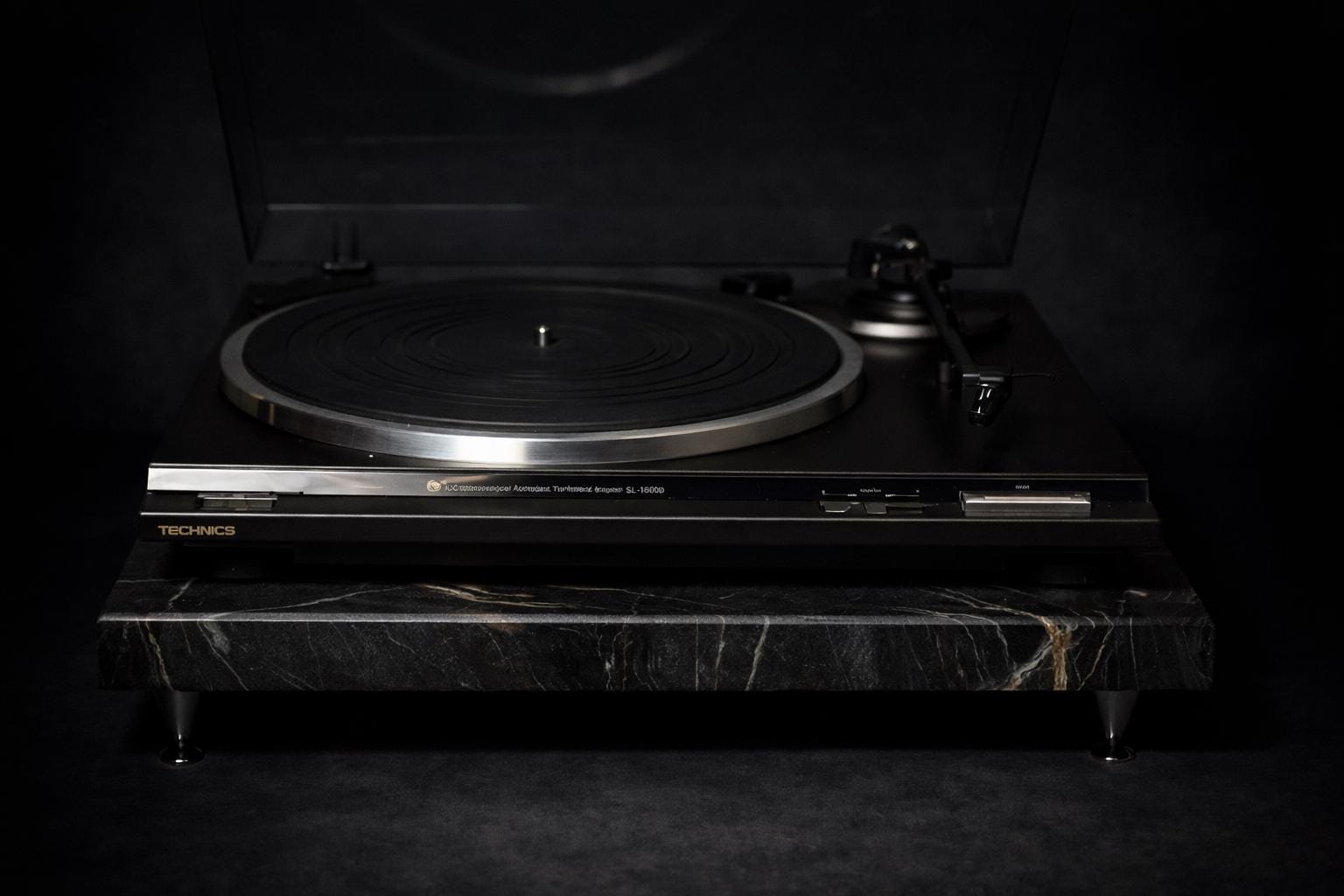 Black Granite Turntable Isolation Platform 18" x 16" x 1.25" with 1.5" Spikes.