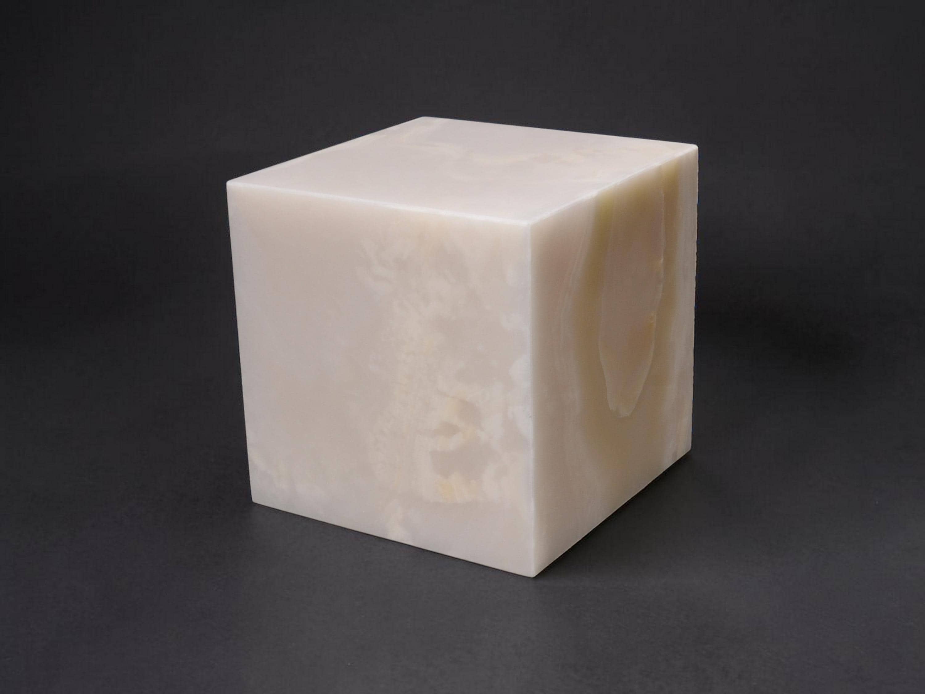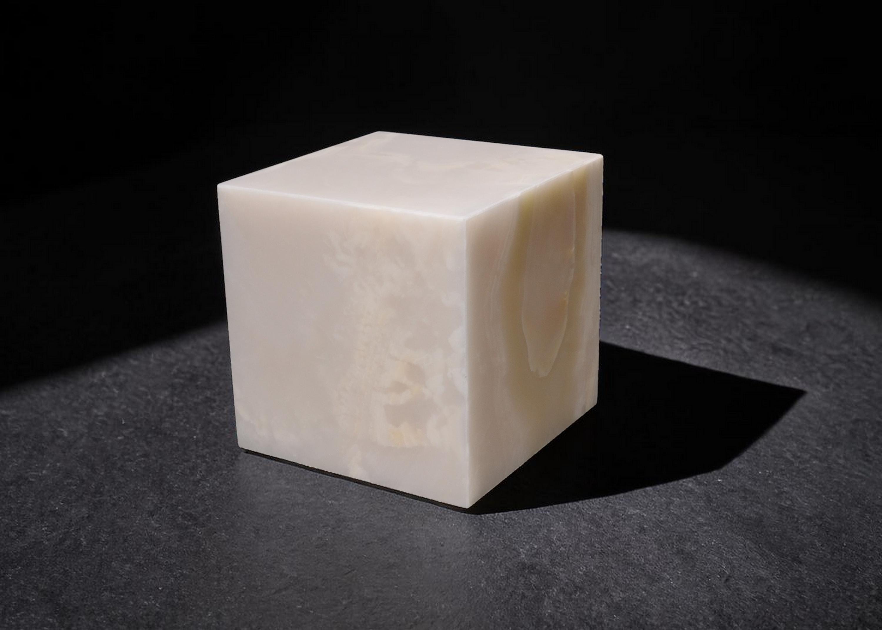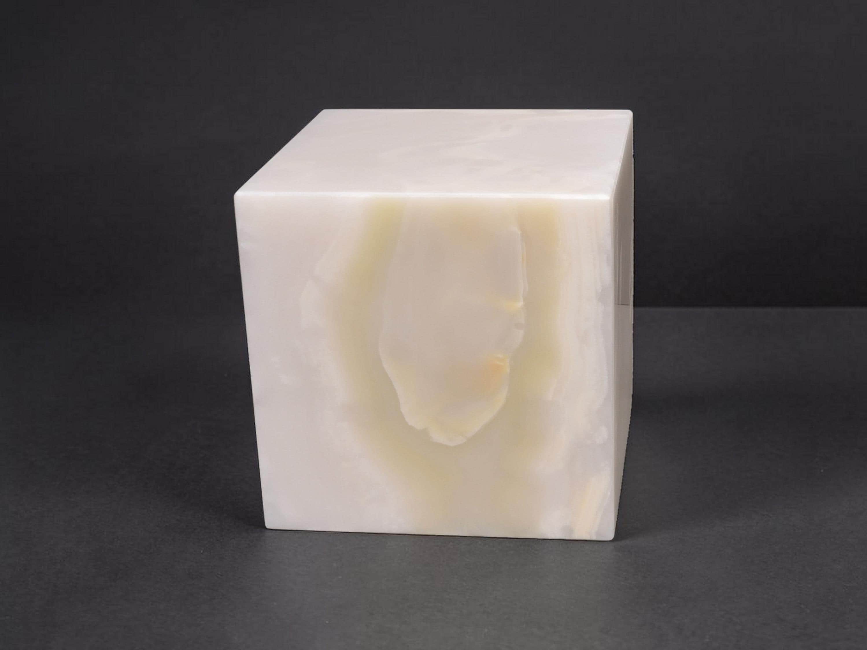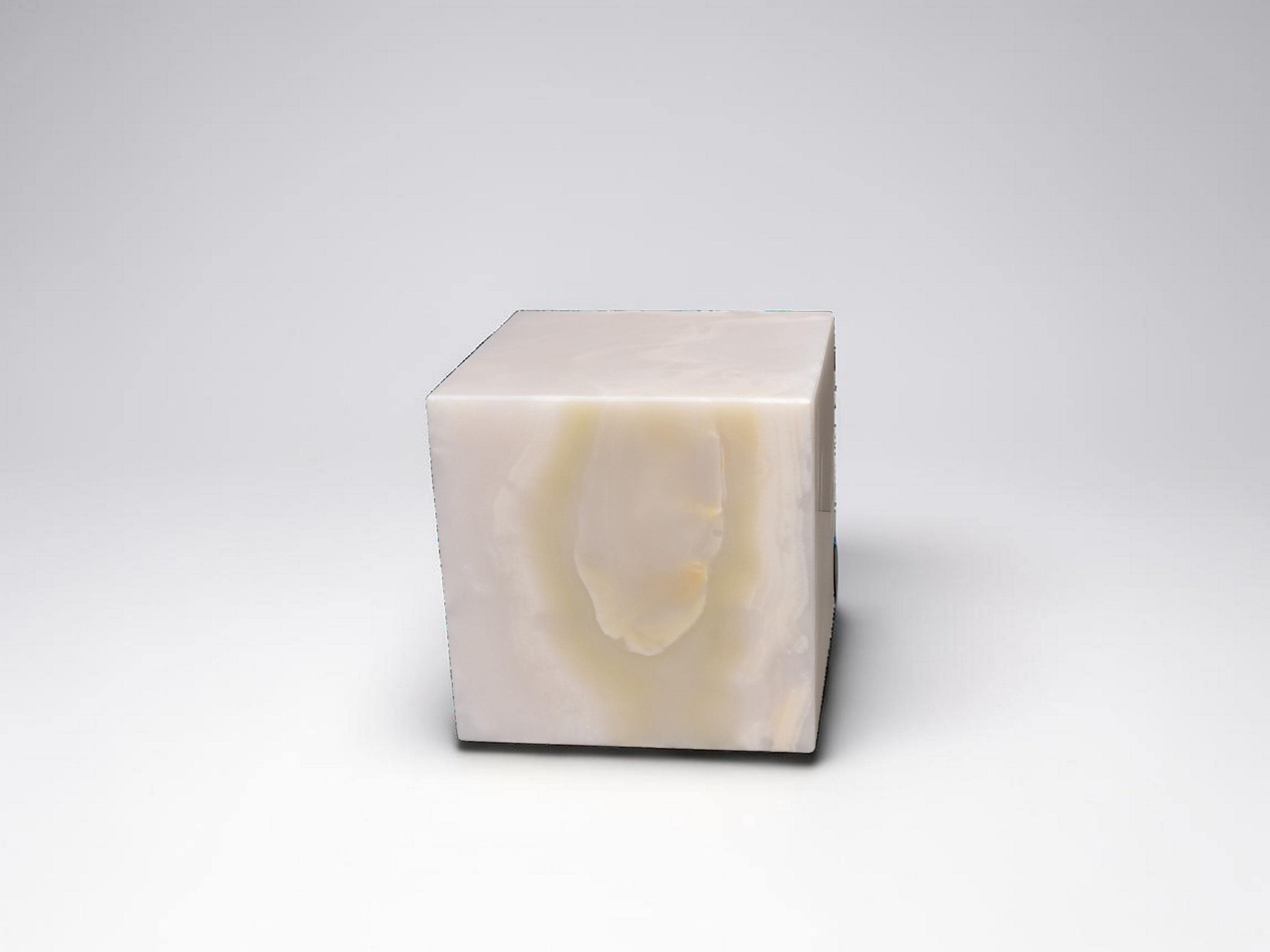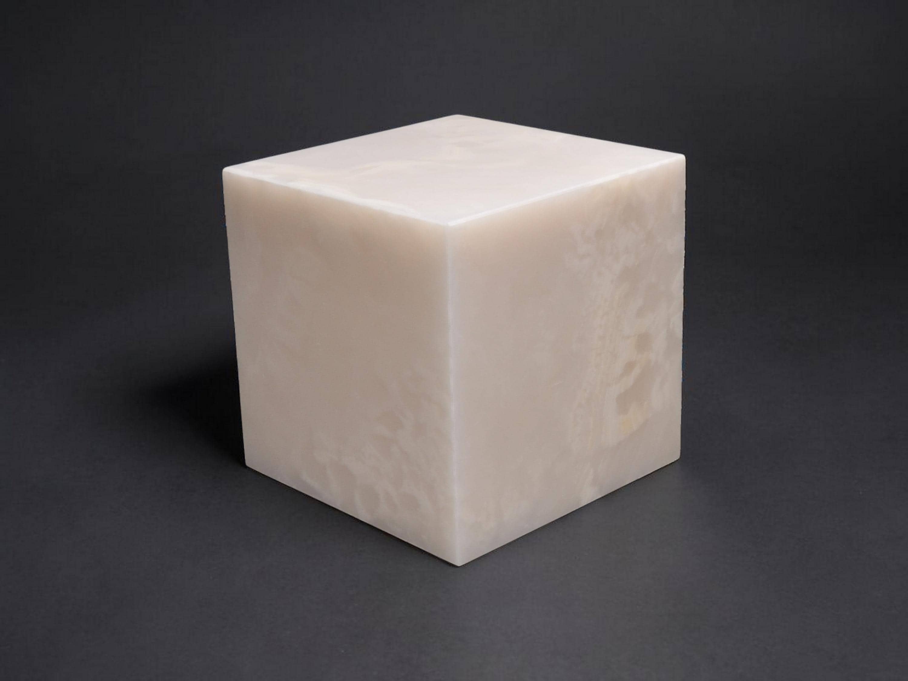 A 10x10x10 honed White Onyx marble pedestal designed with pure architectural geometry. Part of the Architectural Series, Quiet Form.