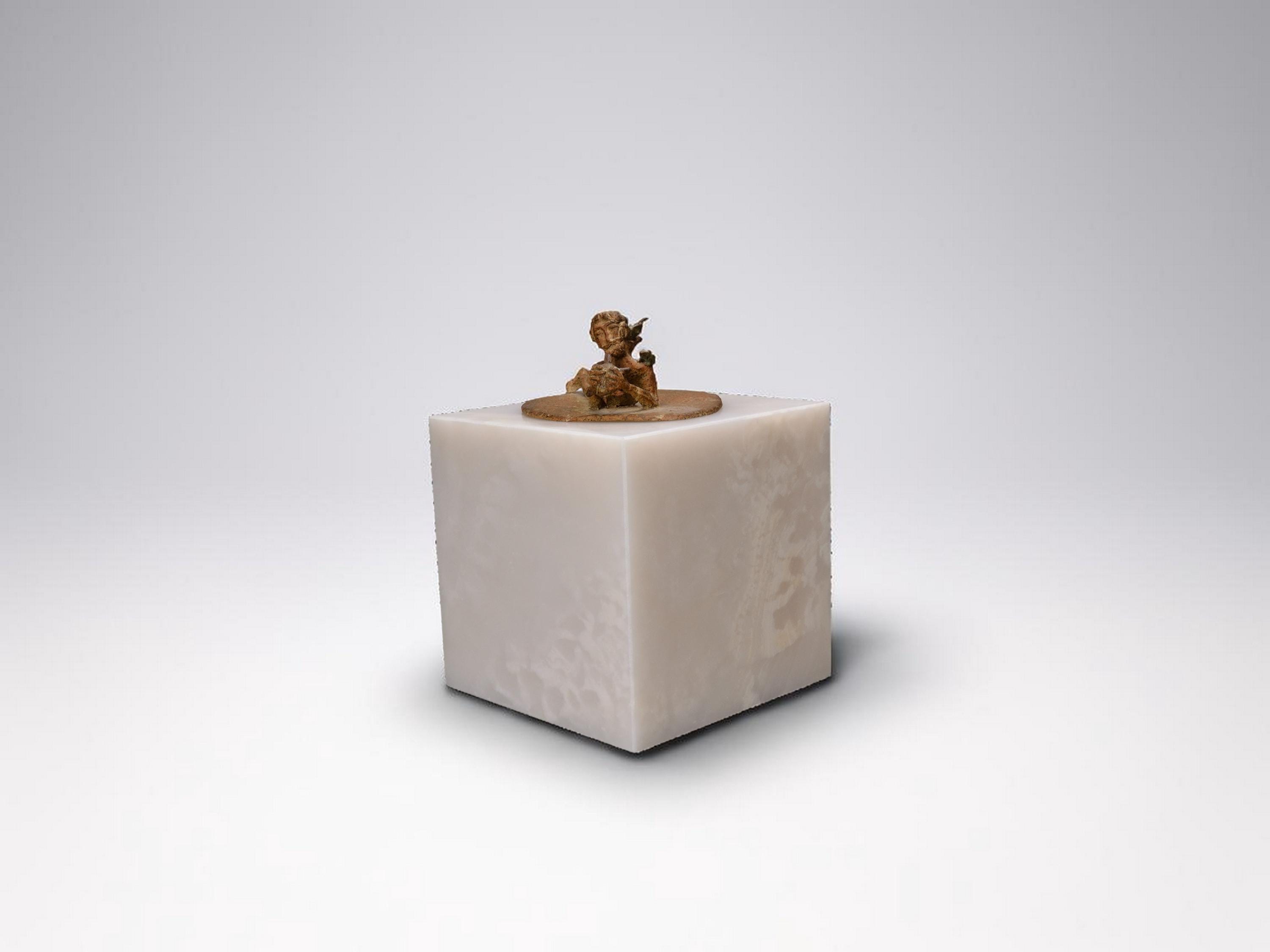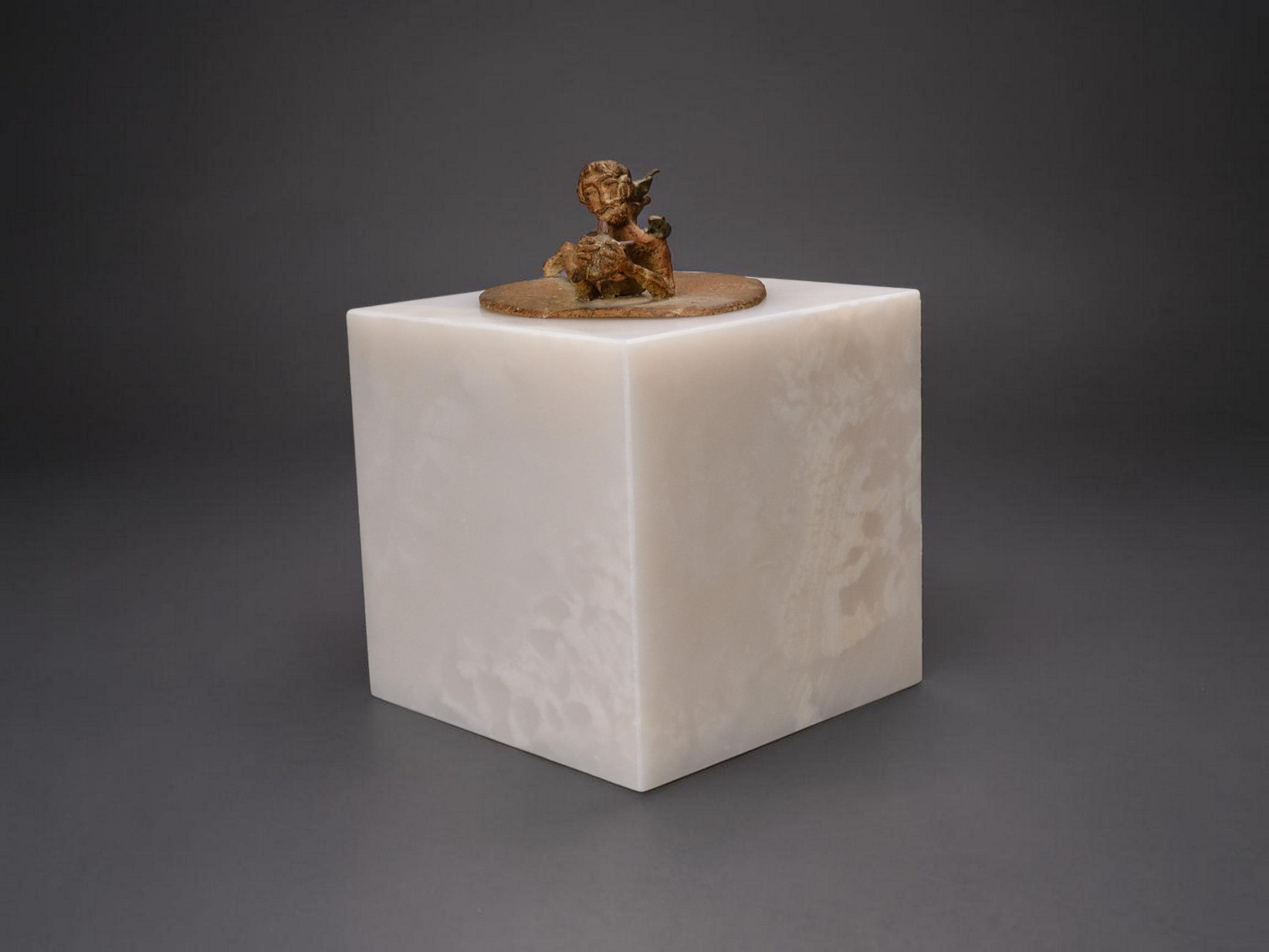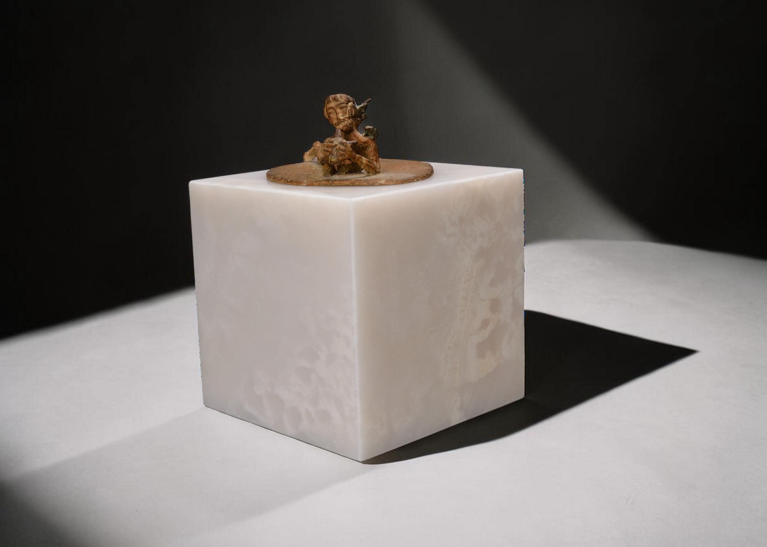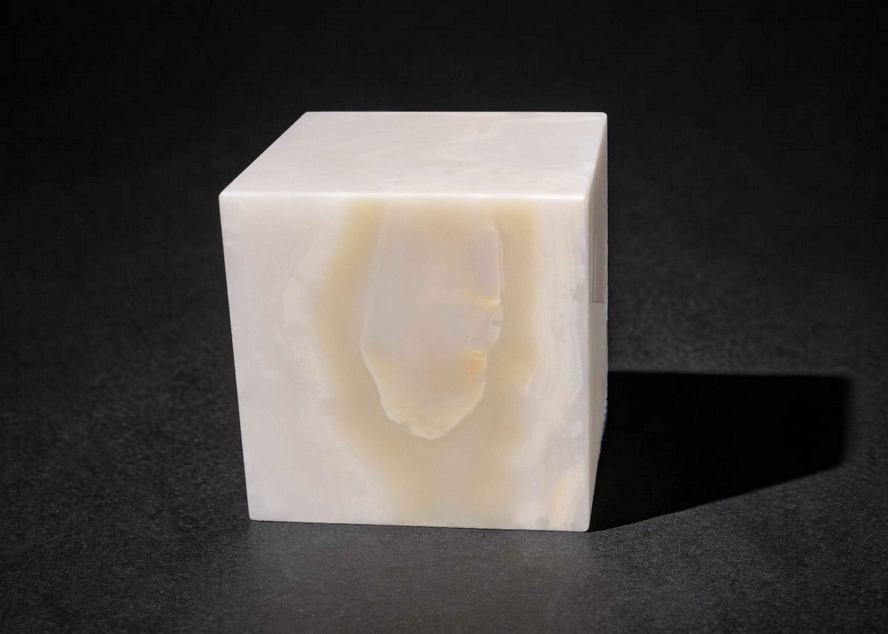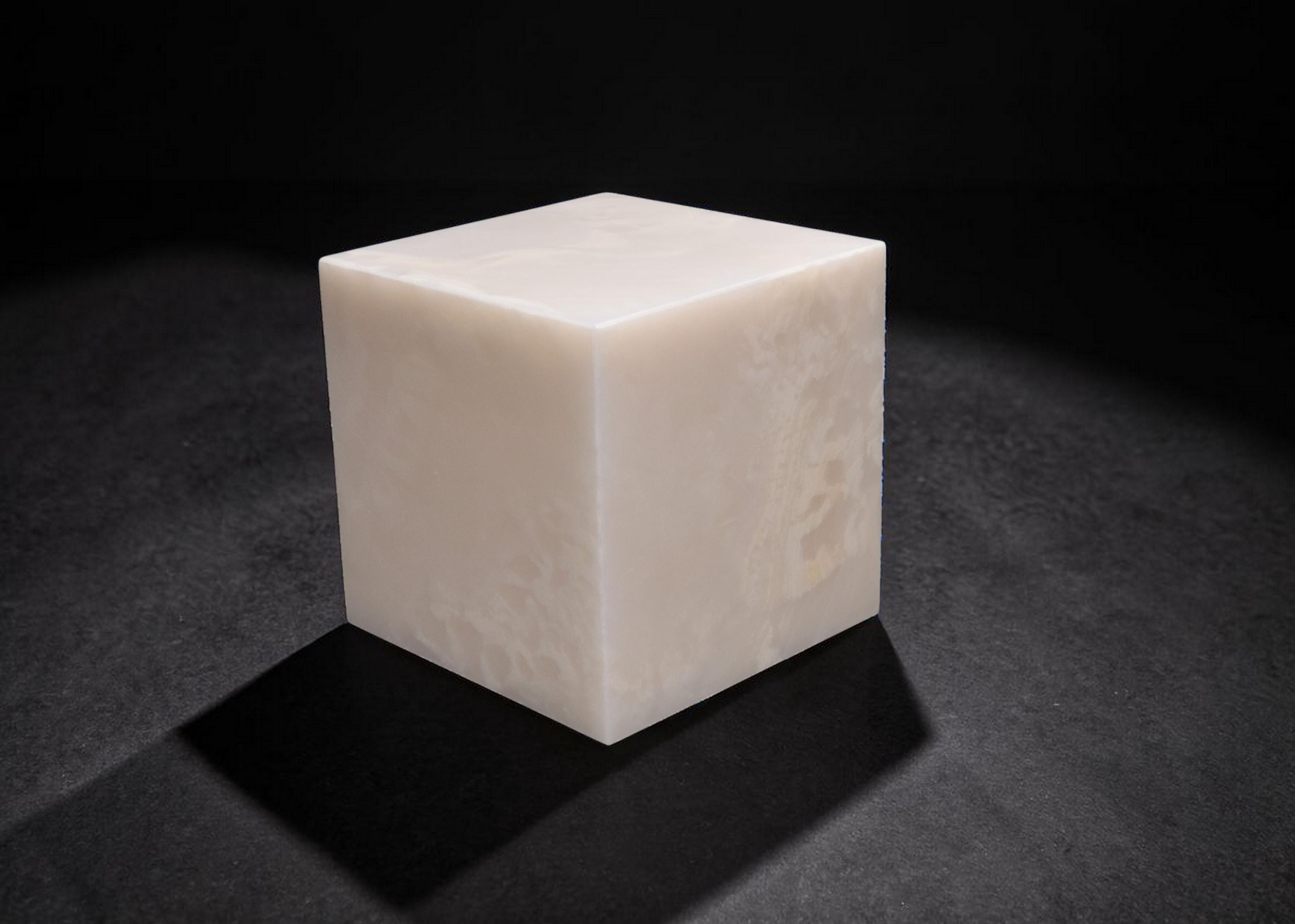 A 10x10x10 honed White Onyx marble pedestal designed with pure architectural geometry. Part of the Architectural Series, Quiet Form.